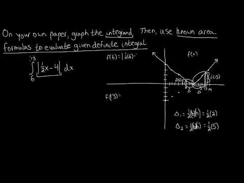 Before using a Definite Integral Property, we review the graphing process of an Absolute Value function. Then, once we have graphed our integrand, we subtly use a Definite Integral Property to split our integral into 2 smaller integrals. While doing this, we substitute Area formulas in for them to give us the Area under our curve graphed on the original interval by adding those areas together.