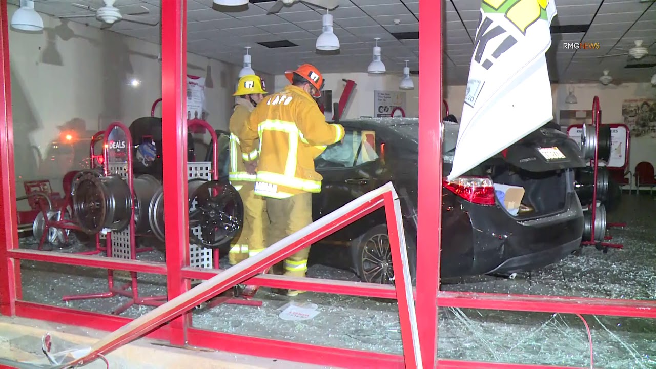 The crash happened at the intersection of Balboa and Devonshire around 11.15pm. LAFD arrived and found a 3 car crash with a vehicle that had crashed into a pole then careened into an America's Tire store. LAFD evaluated the drivers of the three vehicles and miraculously no one was seriously injured