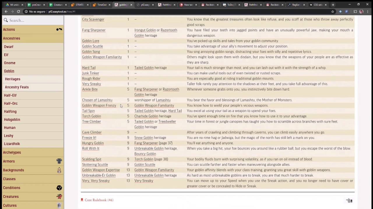 Every card comes with new additional information. Classes, Ancestries, Archetypes come with tables that summarize everything you need to fully explore the card. All at one click away.