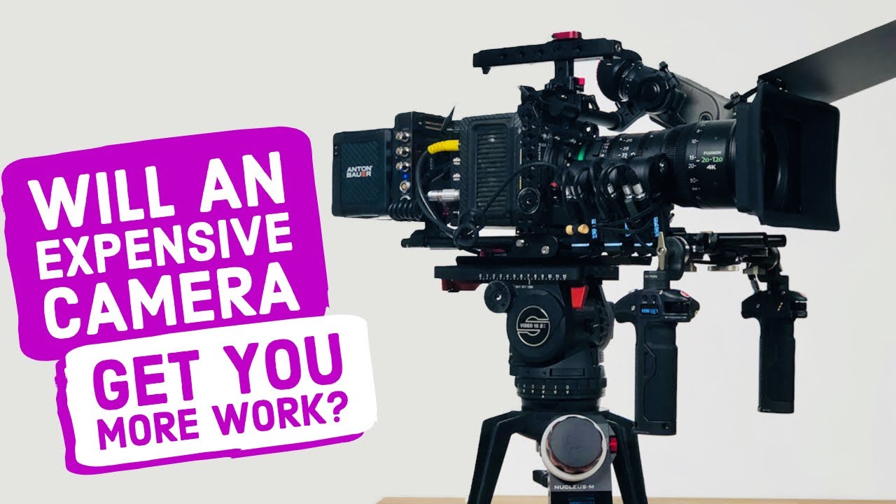 One big consideration when buying an expensive camera to get more work is not only Can you afford the expensive camera itself, but Can you afford the accessories that are needed for it? A tripod for a smaller camera versus a larger camera increases the price drastically. Gimbals for larger heavier cinema cameras cost a lot more than smaller gimbals. Even the media needed or the batteries can cost thousands of dollars you may not have been expecting to spend, and if you forget to buy these things it can lead to a really bad day on set. So when thinking about buying an expensive camera make sure to do your research to see what accessories you need to get through a full day of shooting.