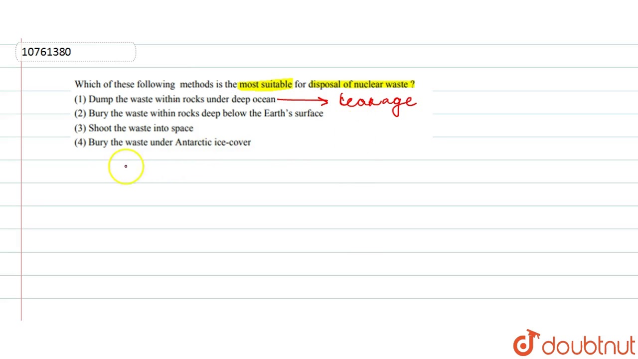Which of these following methods is the suitable for disposal of nuclear waste? neet 2020 study plan,neet 2020 preparation,neet 2020 syllabus,neet 2020 cut off for government colleges,neet 2020 latest news,neet exam 2020,neet exam 2020 details,neet exam preparation,neet exam,neet exam questions in hindi,neet 2020,neet important questions 2020,neet important chapters 2020,neet important questions 2020 chemistry,neet important questions 2019 chemistry,neet sample paper 2020,neet mock test online free,neet mock test