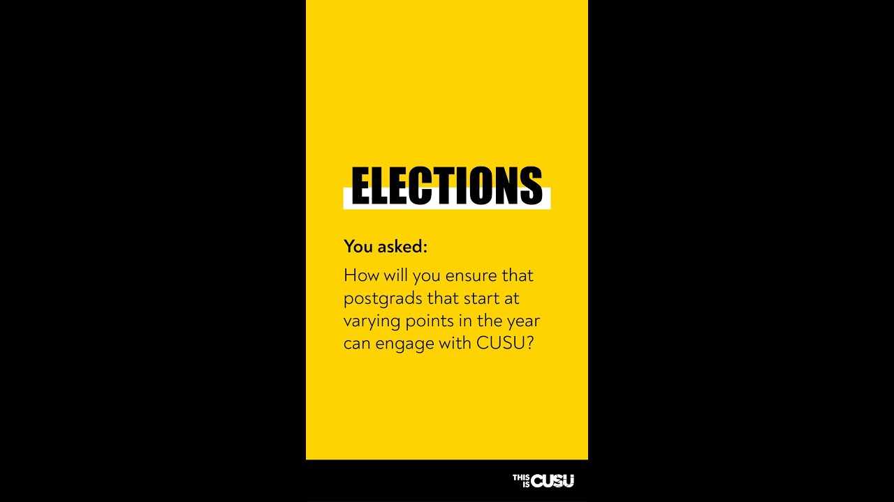 Postgraduate students can start throughout the year, how will your prospective Postgraduate Officers ensure those students can engage with CUSU? Voting open 8am-8pm, Mon 8th - Thu 12th March.