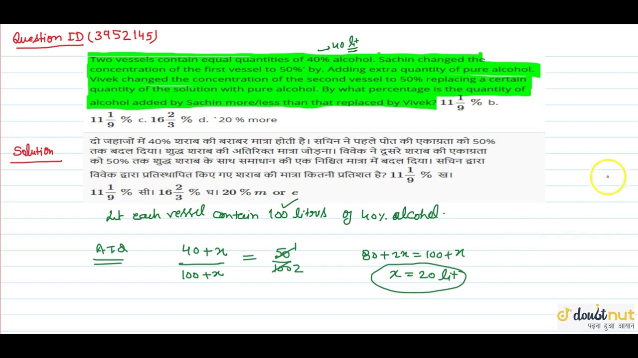 first vessel to 50%\' by. Adding extra quantity of pure alcohol. Vivek changed